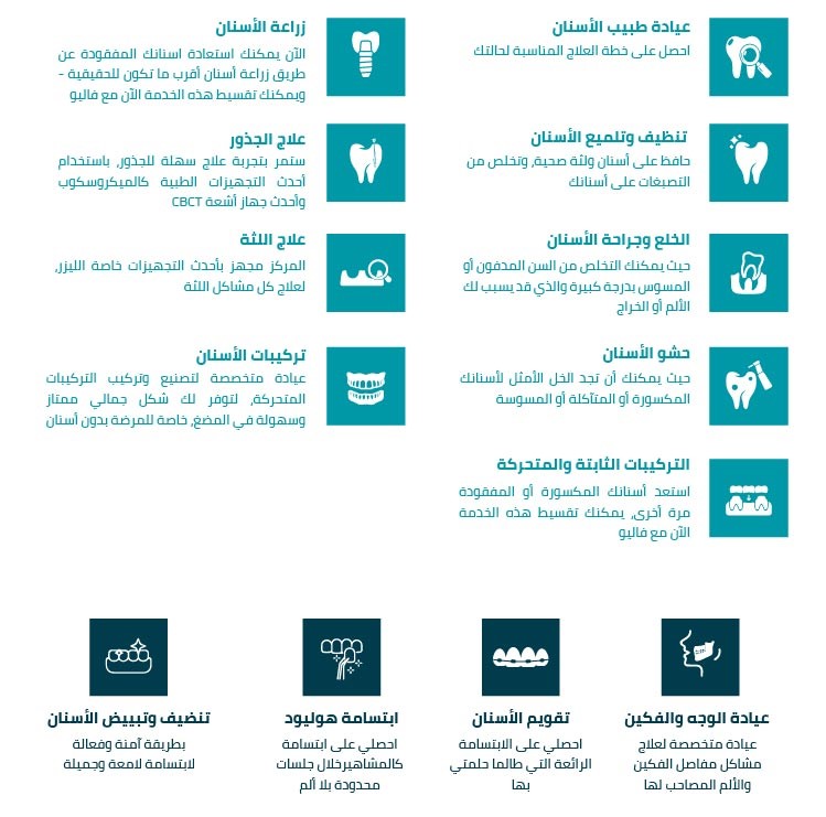 أحدث مركز متخصص لعلاج وجراحة الفم والأسنان، تم تطويره حديثاً ليتناسب مع المعايير الطبية العالمية للجودة ومكافحة العدوى، ومجهز بأحدث التجهيزات والتقنيات الطبية الحديثة لتقديم أفضل خدمة طبية