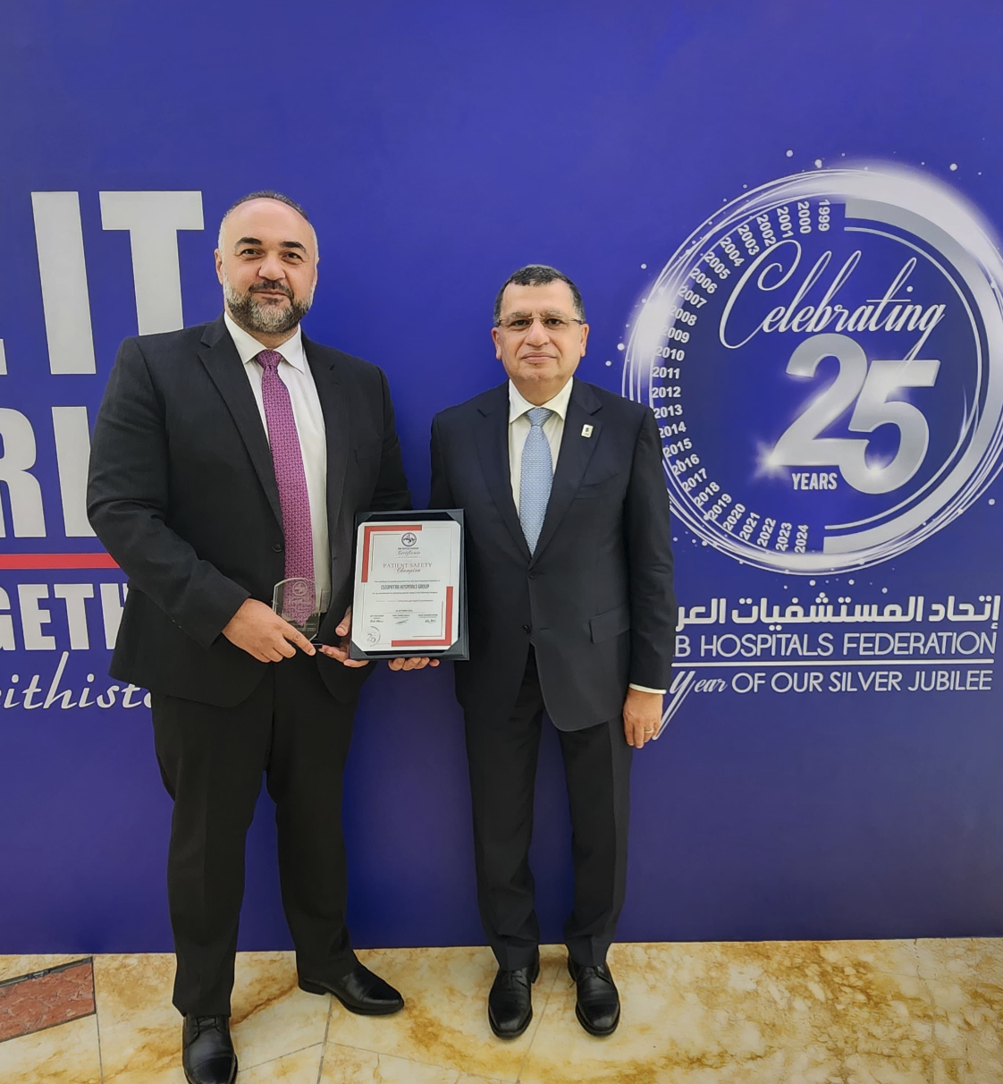 Cleopatra Hospitals Group (CHG) is honored to receive the Platinum Champion Award for Safety through Digital Transformation, awarded under the Arab Hospitals Federation’s “Patient Safety Champion” program at the 2024 MedHealth Forum in Abu Dhabi.